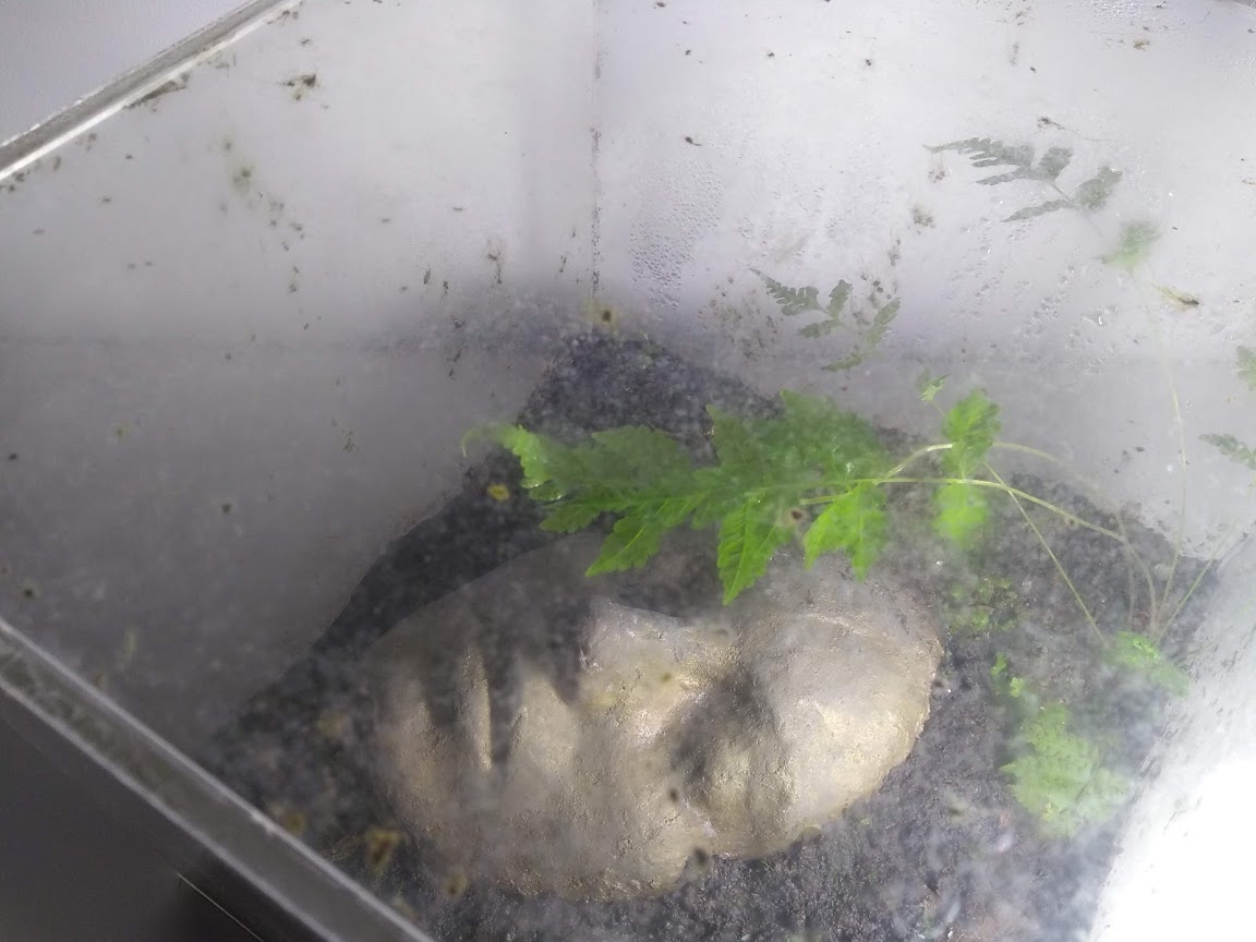 Condensação: micro sistema / água, terra, bronze, plantas, musgos, fungos e caixa de acrílico / 26 cm³. Fotos do 1º dia.