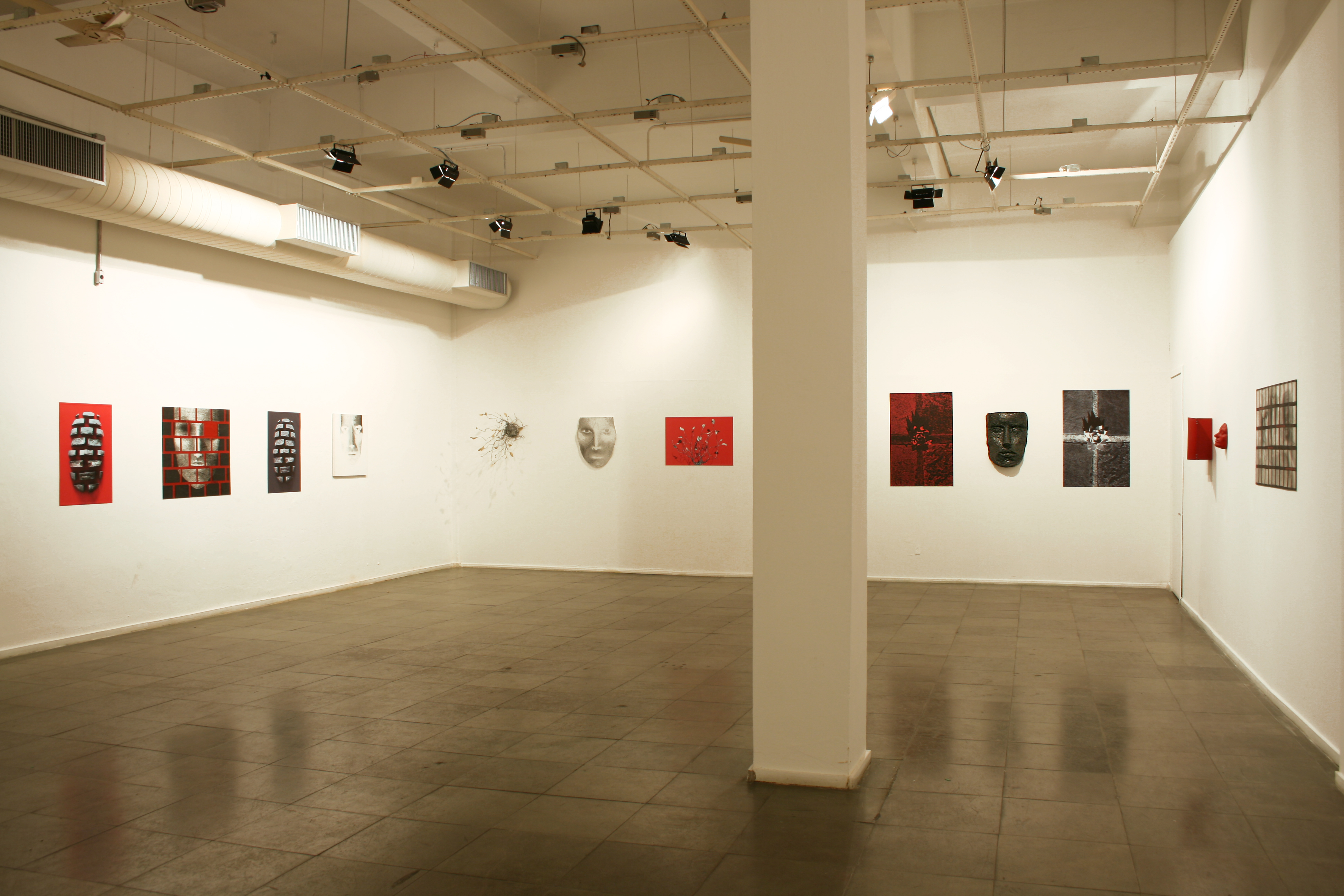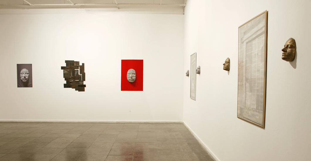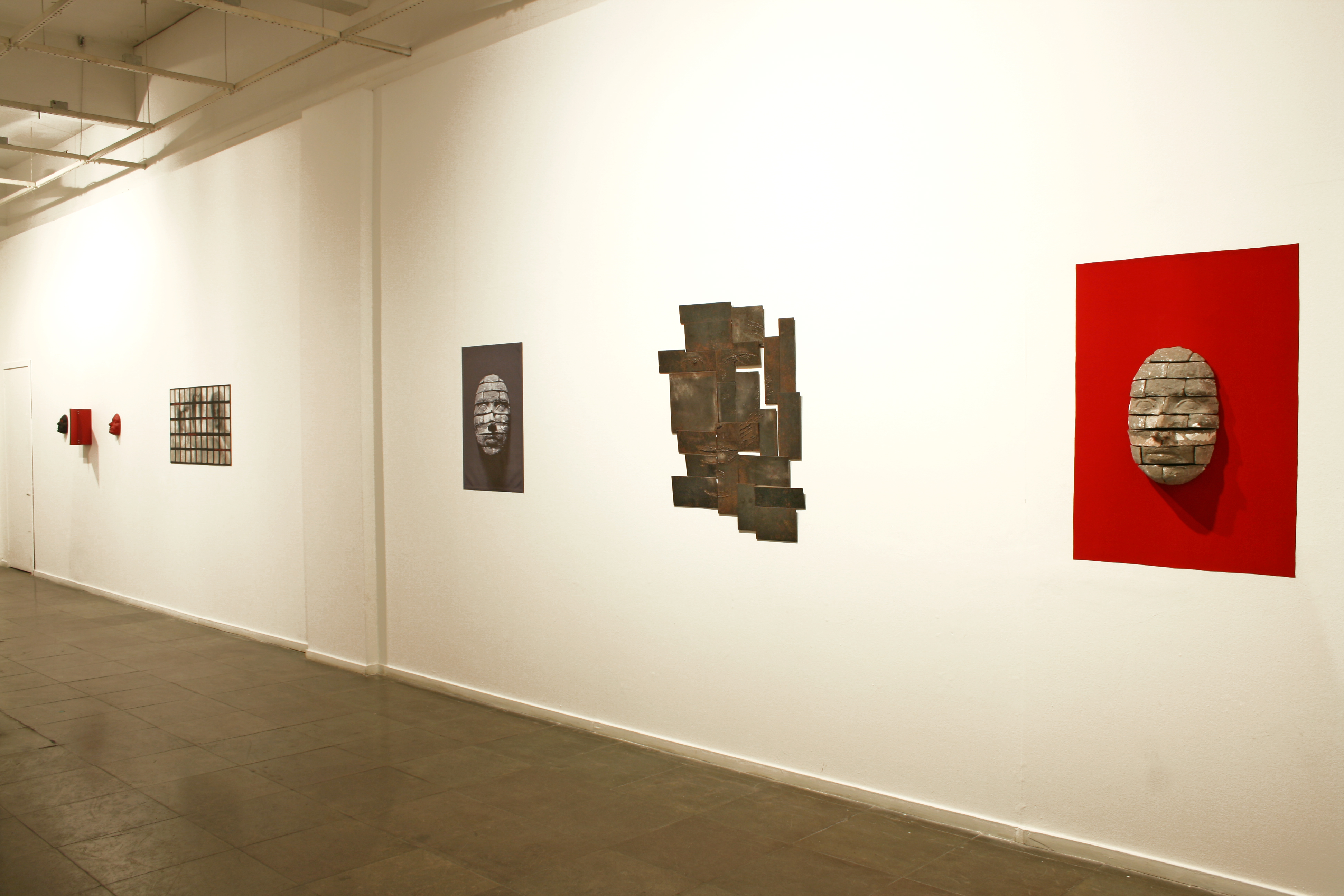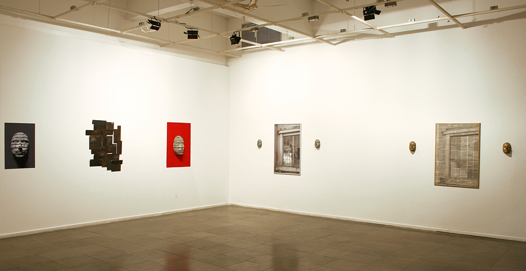Variação I da Memória; fotografia; 76 x 45 cm / S/ título (série Retratos; desenho com solda sobre placas de ferro; 120 x 96 cm / Memória (da série Retratos), cimento sobre fundo de veludo, 45 x 30 x 17 cm. / Janela I, fotografia (1,12 x 0,77 m) e máscaras de alumínio / Janela III, desenho sobre recortes do obituário (1,12 x 0,77 m) / máscaras de bronze.