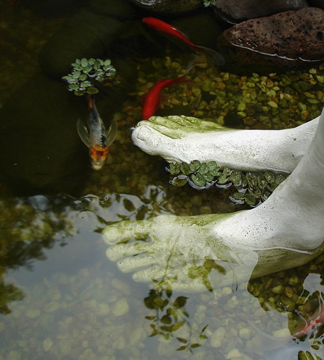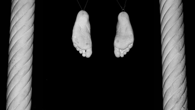 Corpo Expandido no Ateliê de Alexandre Antunes, 2013. Instalação e fotos: Alexandre Antunes. Pés de concreto: obra de Ingrid Noal