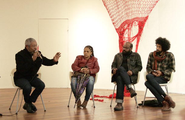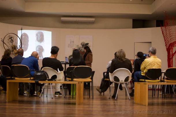 Nessa roda de conversa os artistas puderam falar sobre seus trabalhos e vivências artísticas e Pedro Vargas trouxe suas experiências museológicas a respeito da presença de artistas negros nos acervos de Porto Alegre e seus conhecimentos sobre os territórios negros da capital.